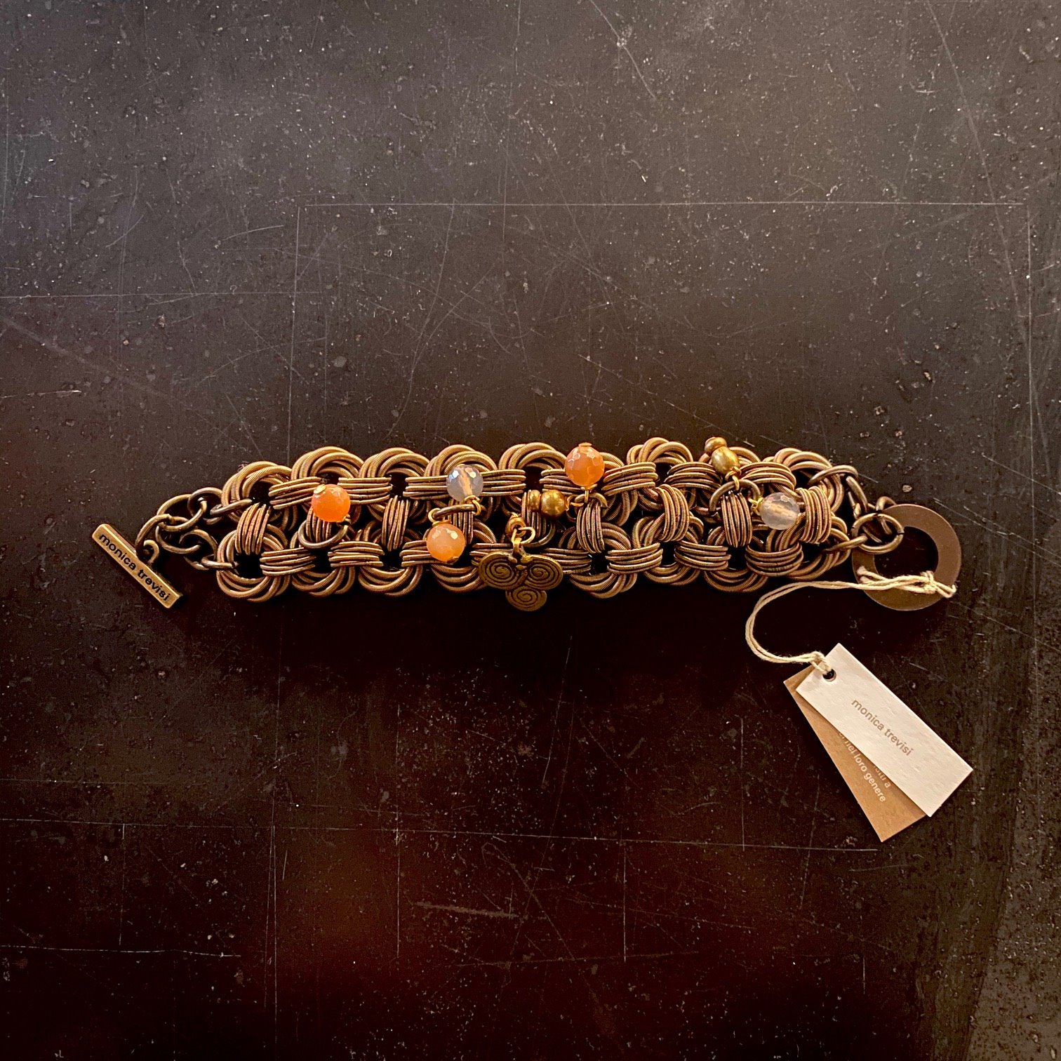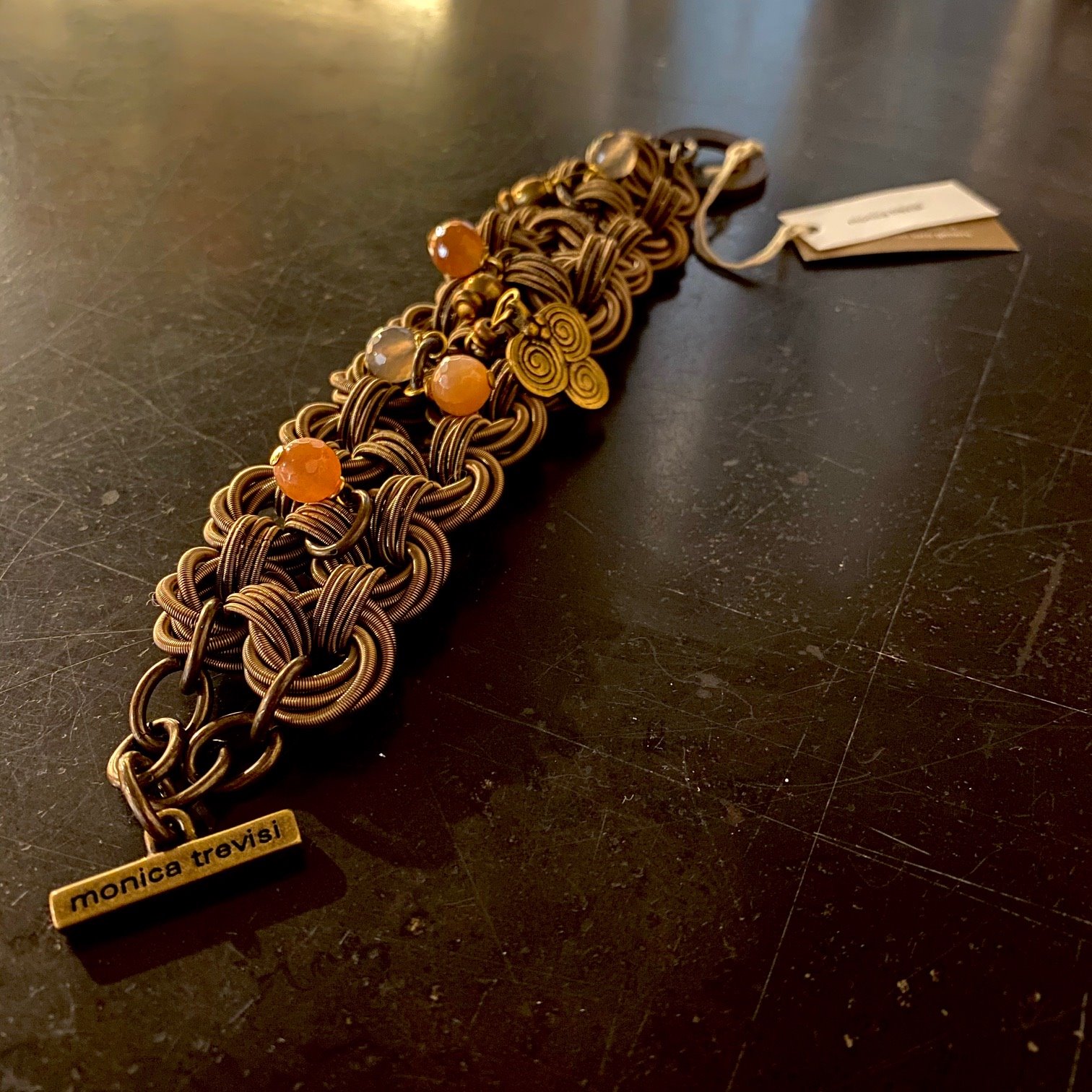 Mescolando l'industriale, come acciaio e alluminio, all'eleganza derivata dalle pietre dure, Monica Trevisi è capace di crearne un'alchimia.